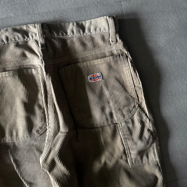 80's dickies corduroy painter pants size 30×32 ウエスト 37cm×2 股上 30cm 股下 70cm 腿幅 26cm 裾幅 22.5cm 80’s頃のDickiesコーデュロイペインター!! これは中々出てこない珍しいアイテムでは ないでしょうか!! 使いやすく珍しい,良いところ尽くしの 一本です!! 【condition】 全体的に使用感、裾上げがございます。
