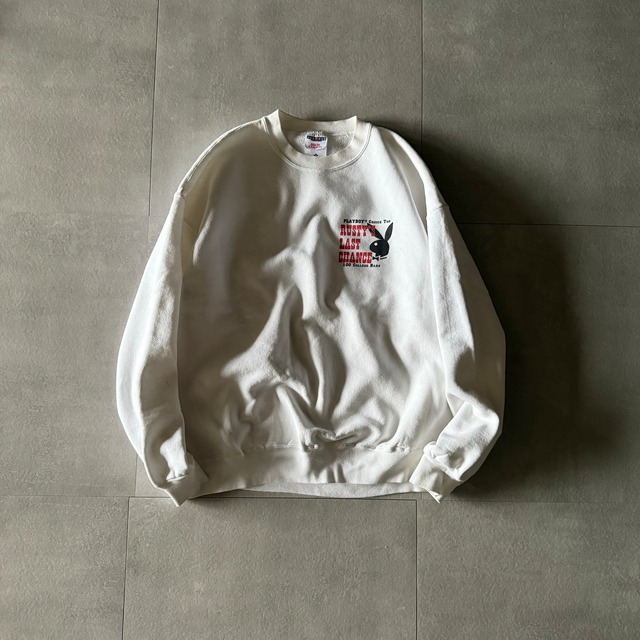 90's Play Boy print sweat size XL 肩幅 62.5㎝ 身幅 62㎝ 着丈 68㎝ 袖丈 56.5㎝ プレイボーイのプリントスウェット!! しっかり90’s頃のoldプレイボーイ◎◎ 胸はワンポイントでバックにはドカンと! 非常にgoodでカルチャーを感じる プリントスウェットかと!! 【condition】 全体的に使用感、汚れがございます。