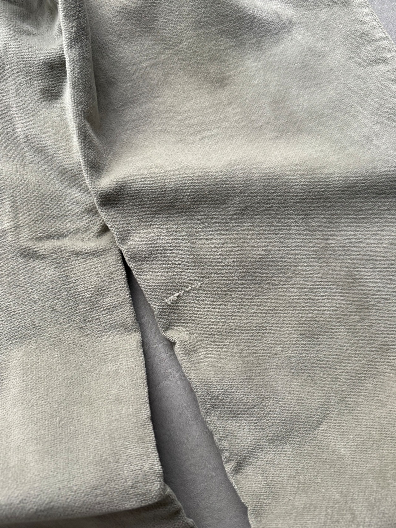 こちらのアイテムはグレーカラーのベロア素材で