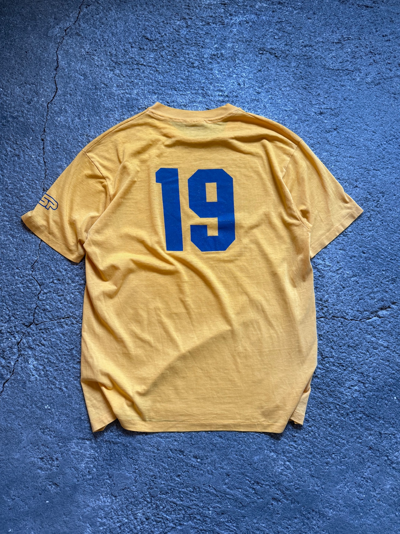 イエローボディにブルーのプリントが印象的な1枚!