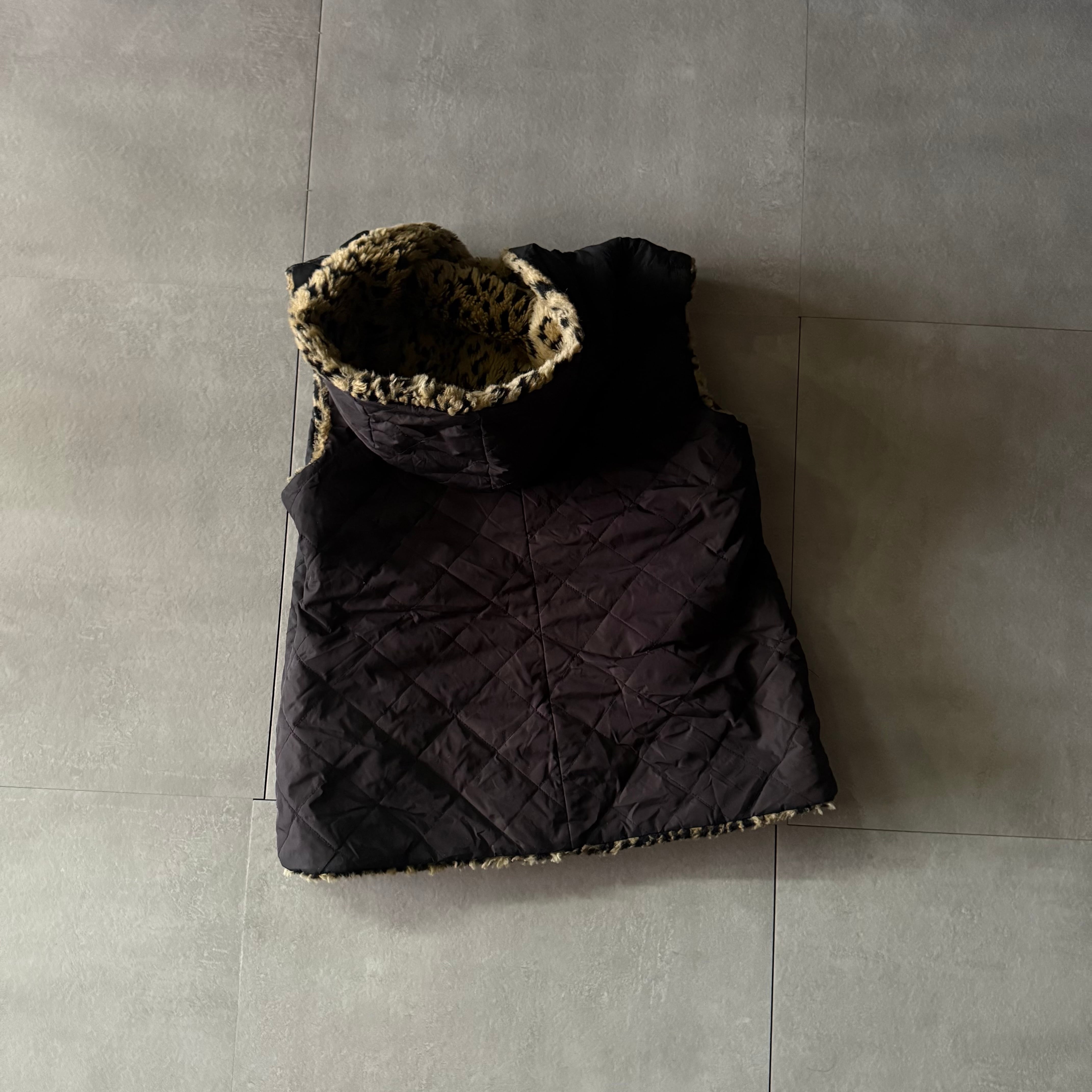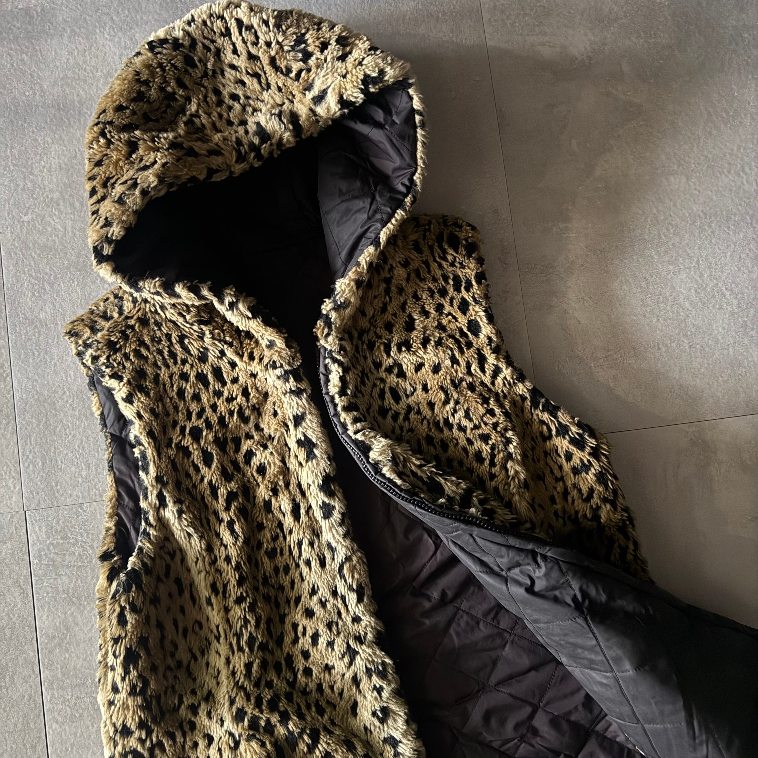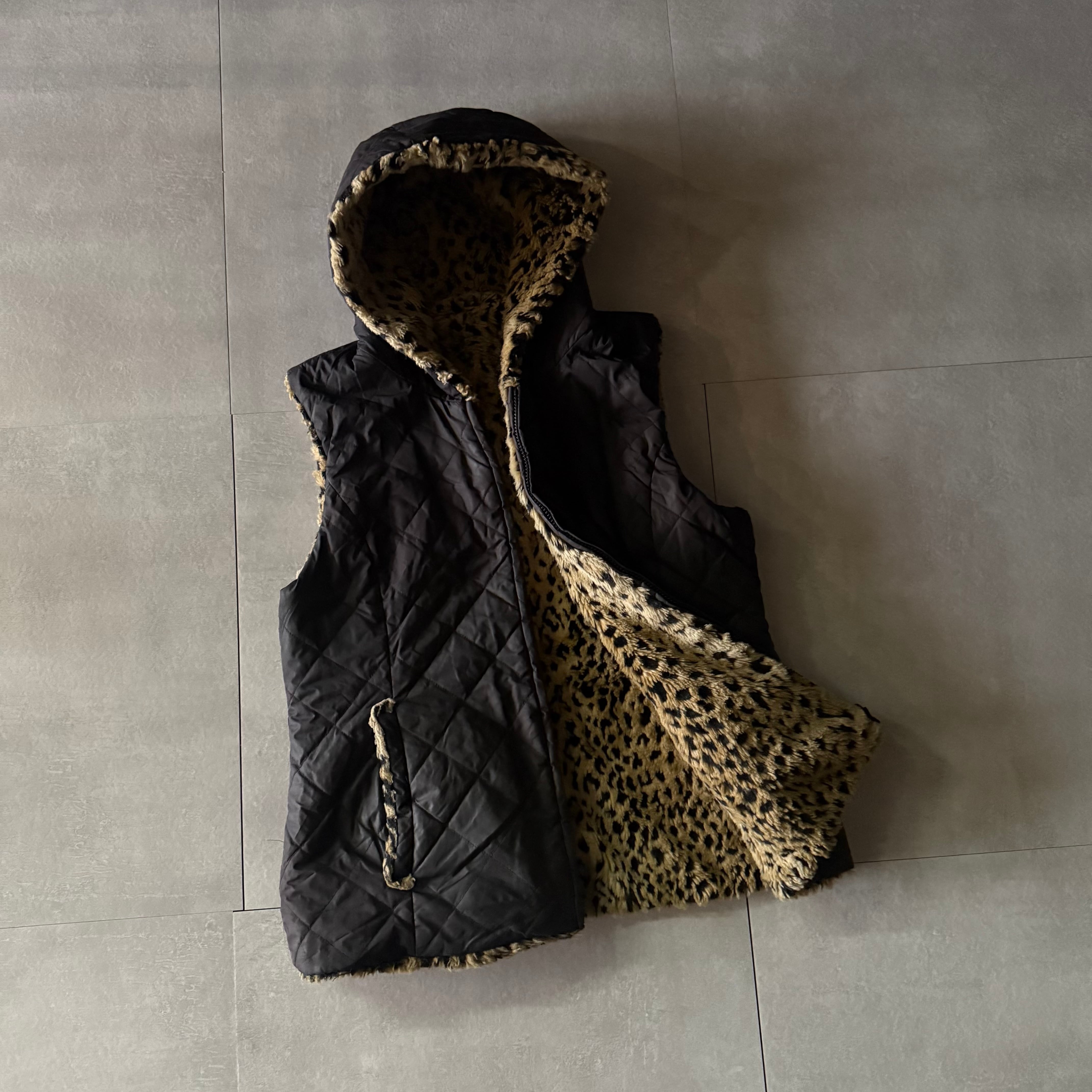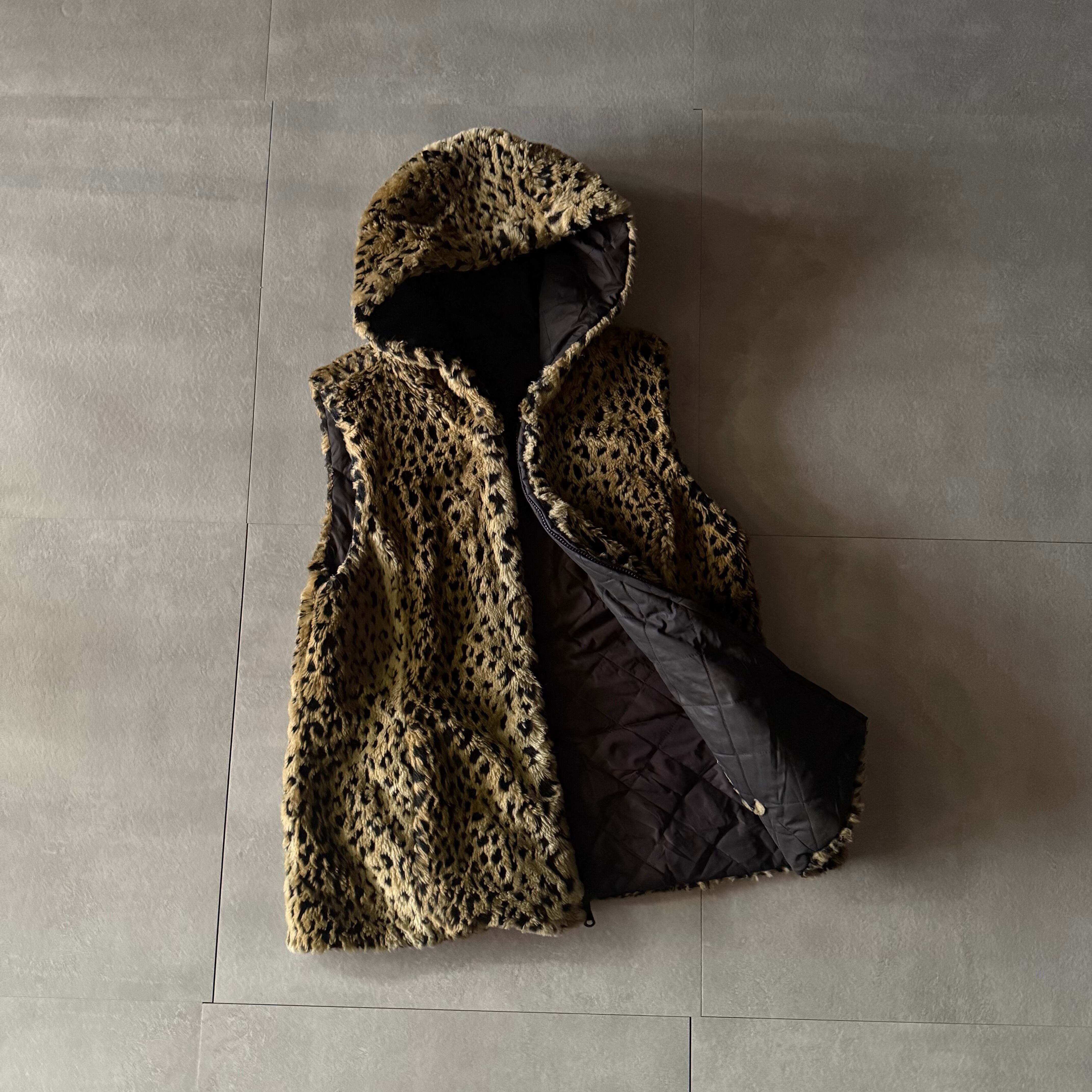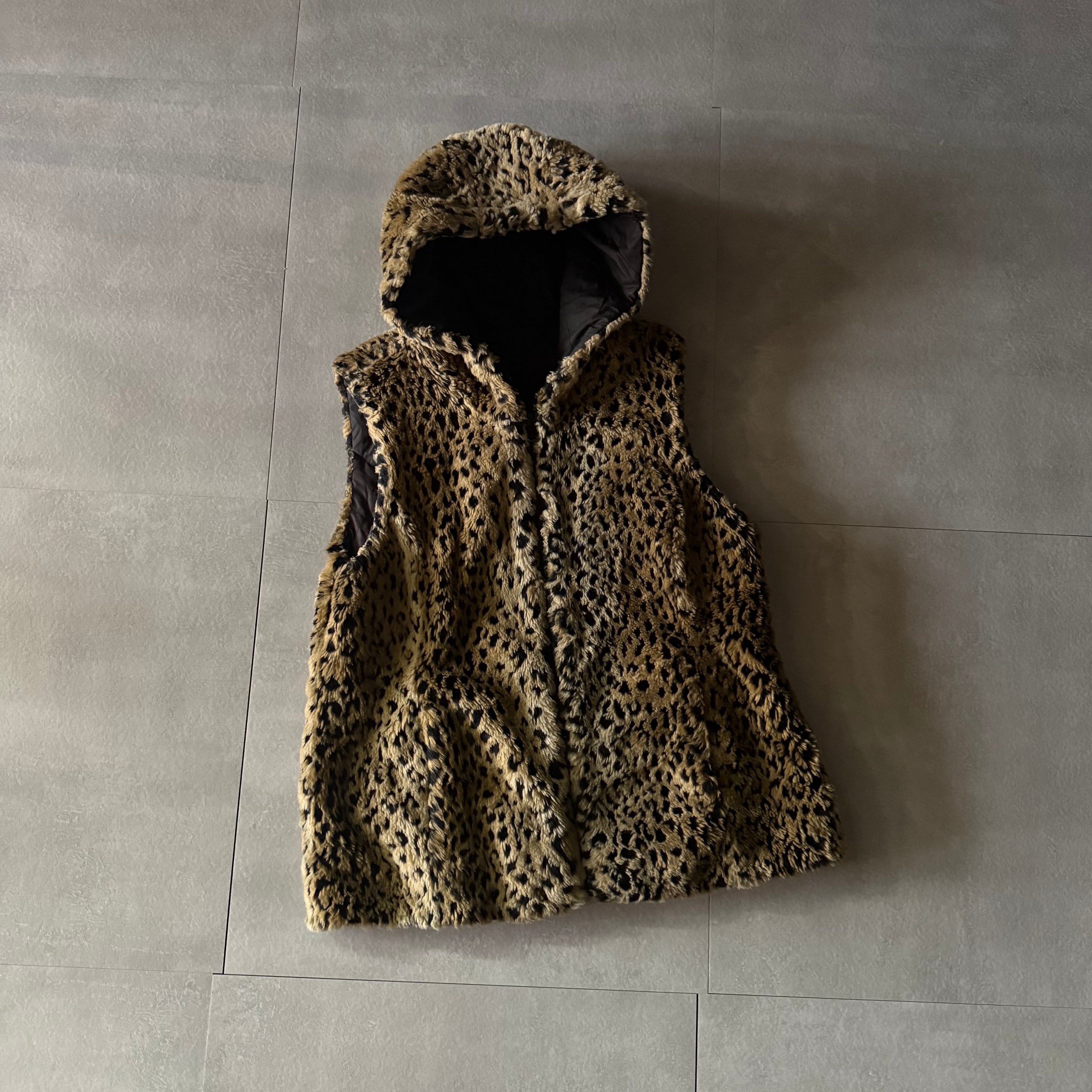 レオパード柄のフェイクファーベスト。