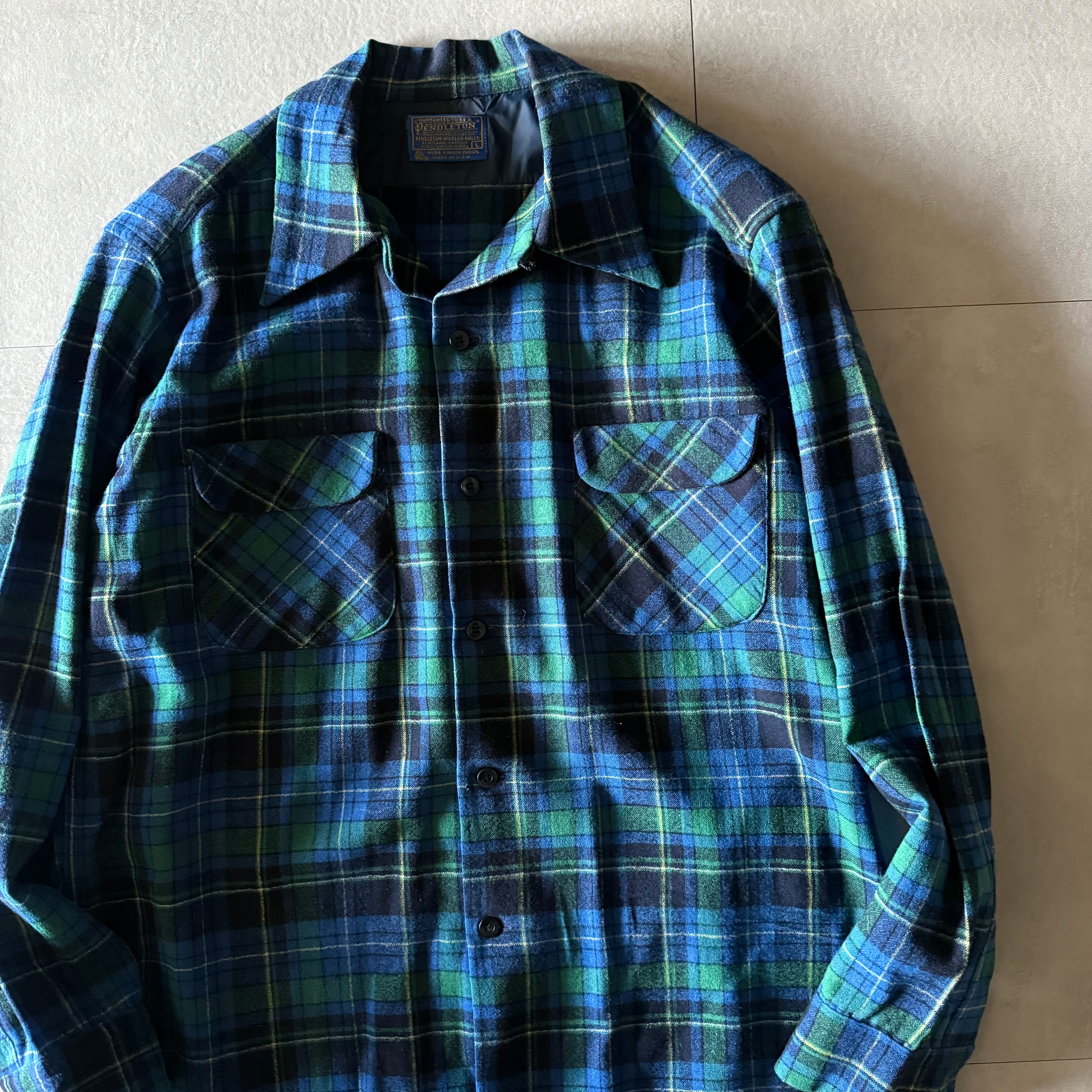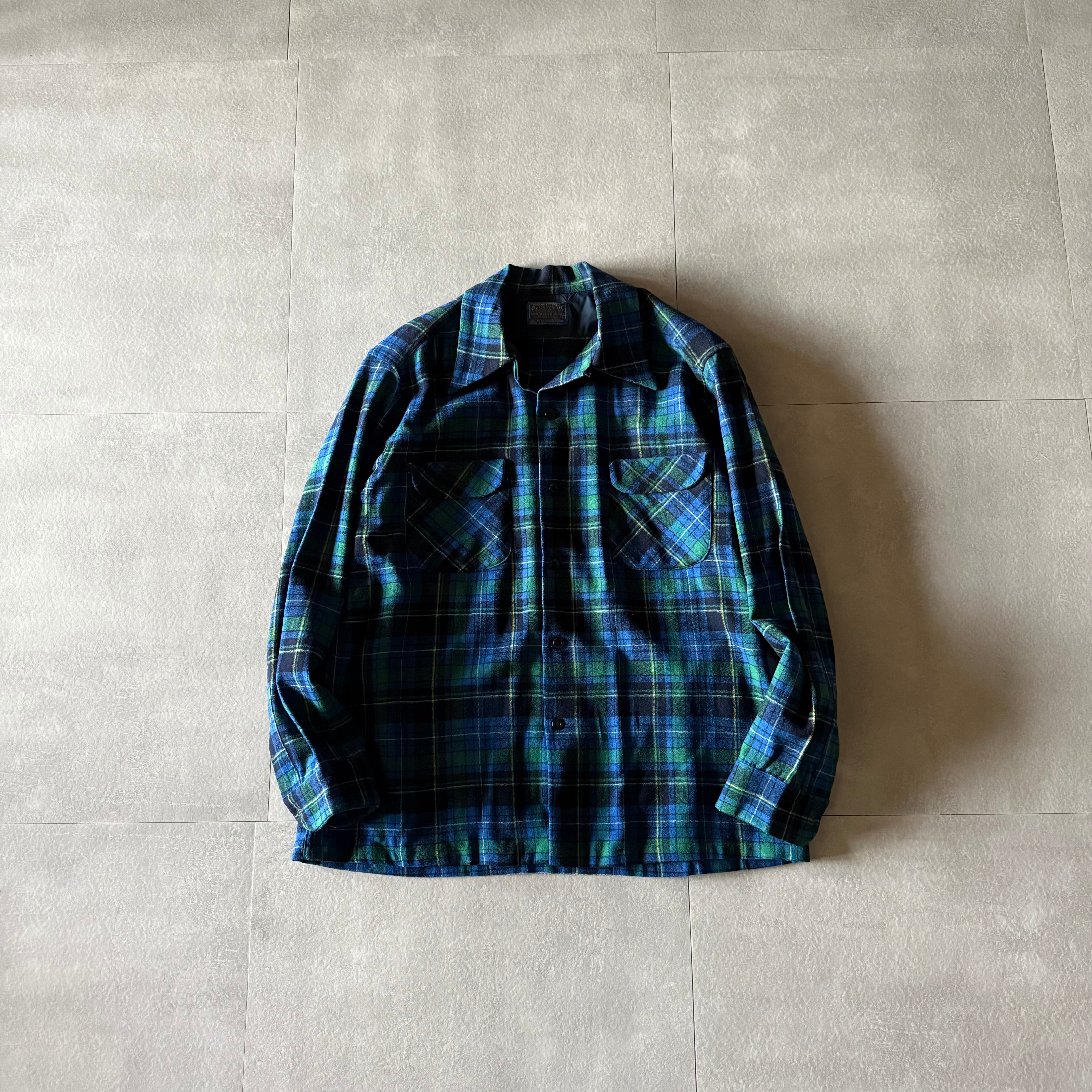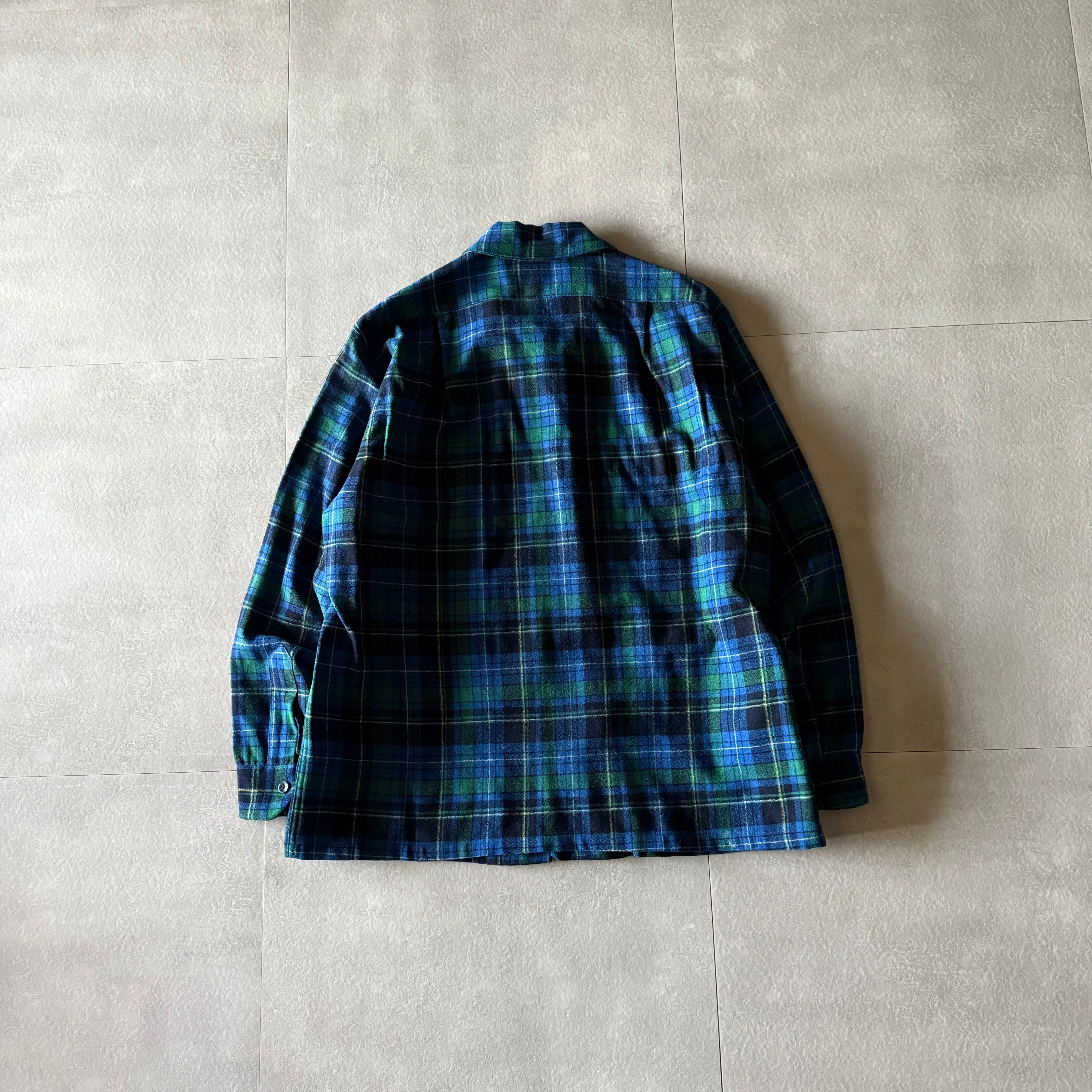 70's Pendleton wool board shirt open collar