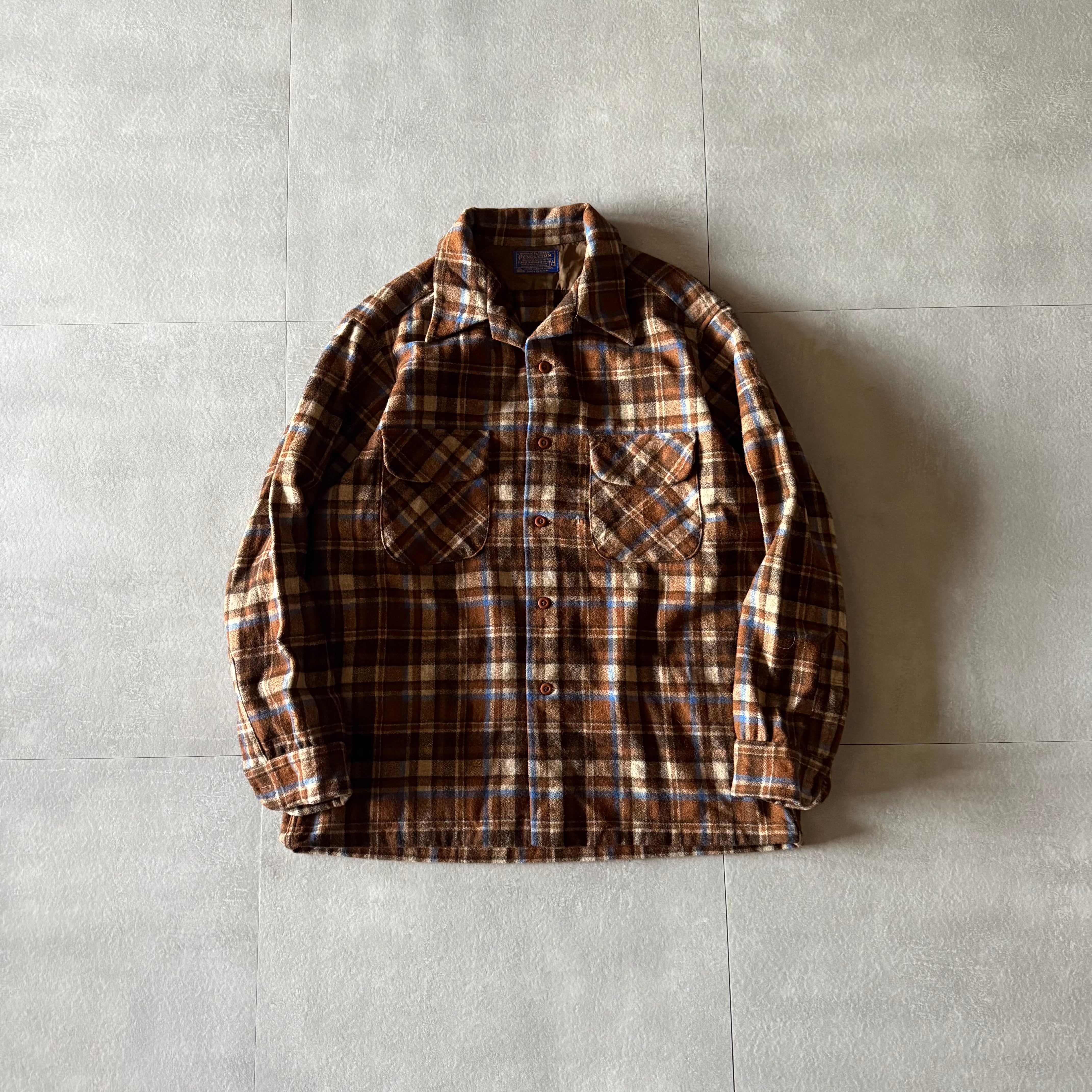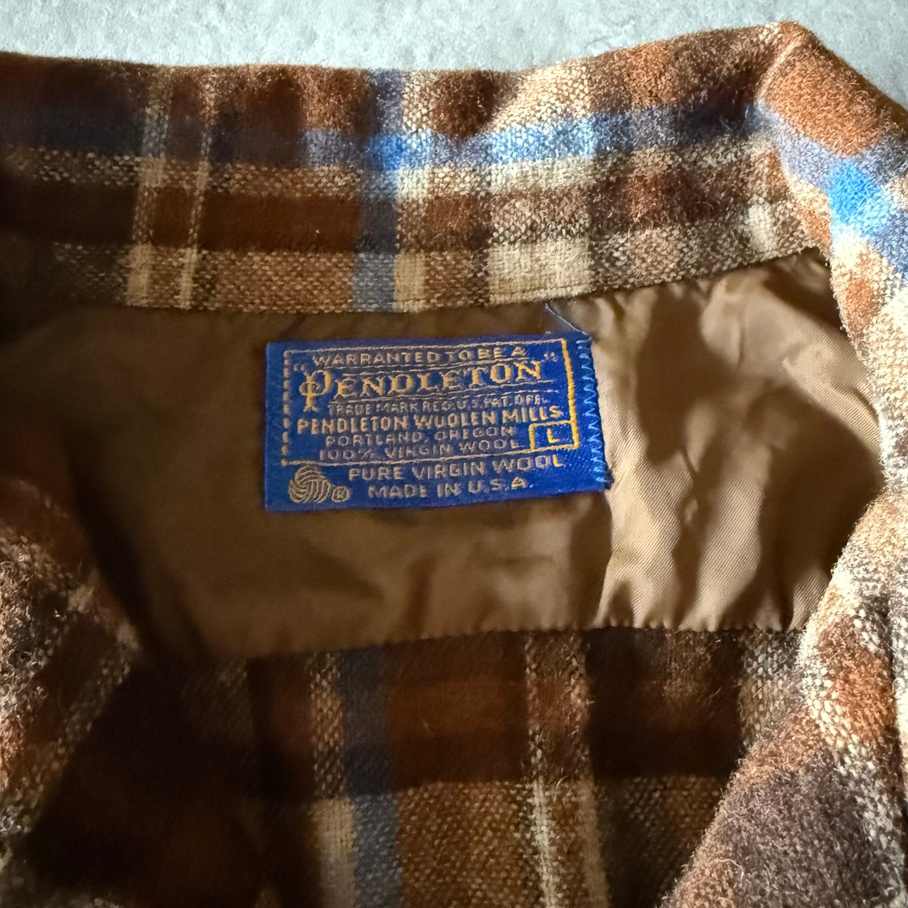 70's Pendleton wool board shirt open collar