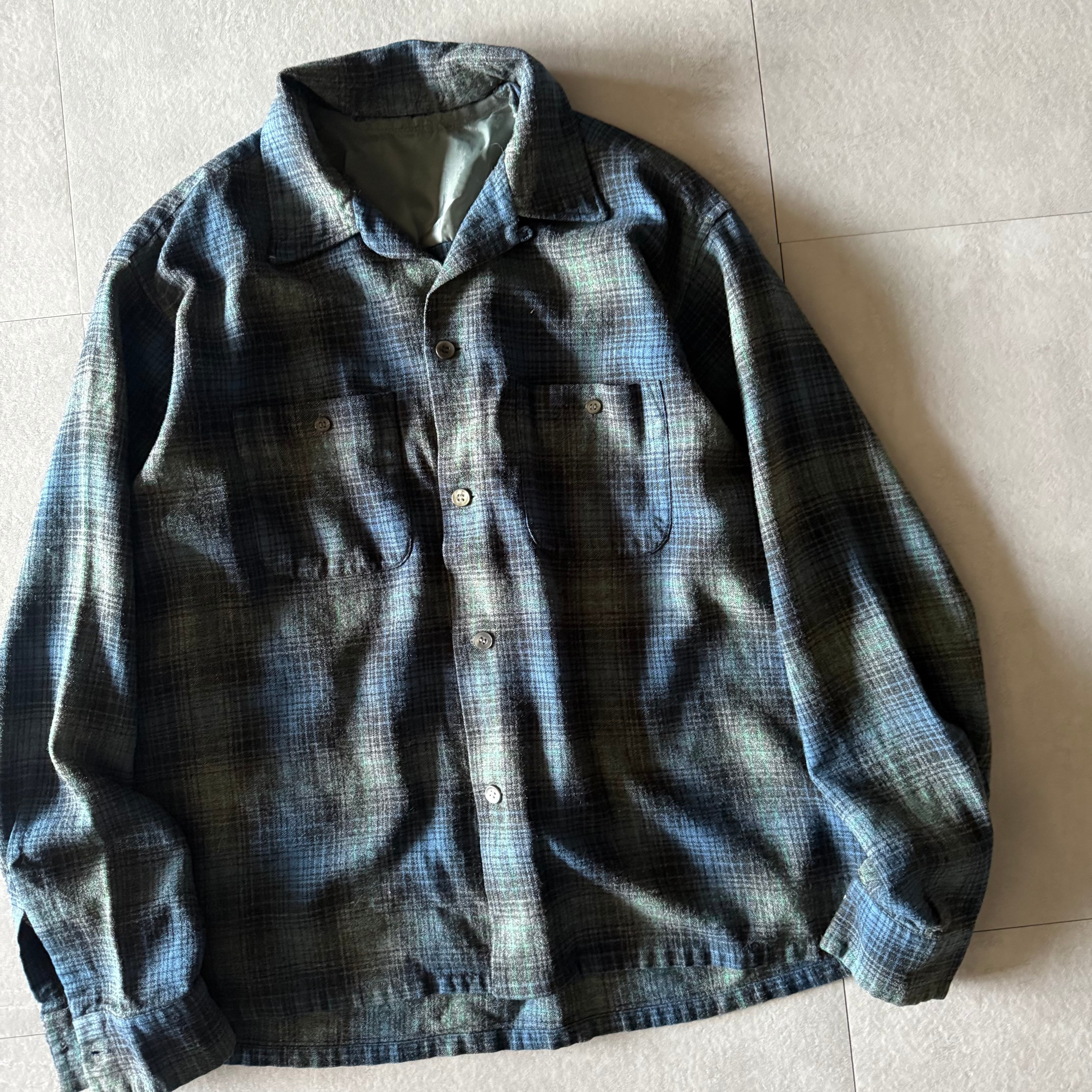 60's ombre wool rayon open collar shirt