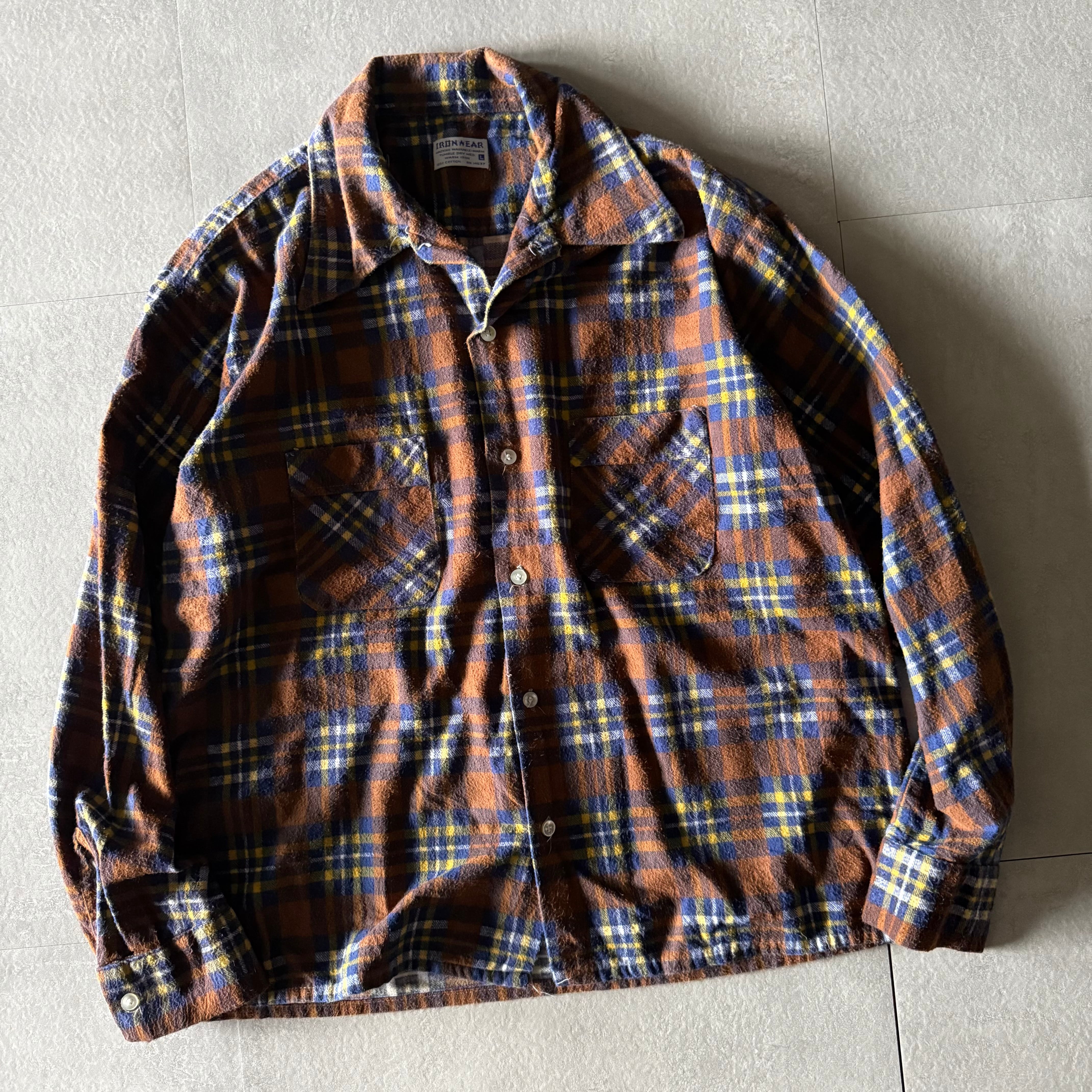 70's iron wear print flannel shirt