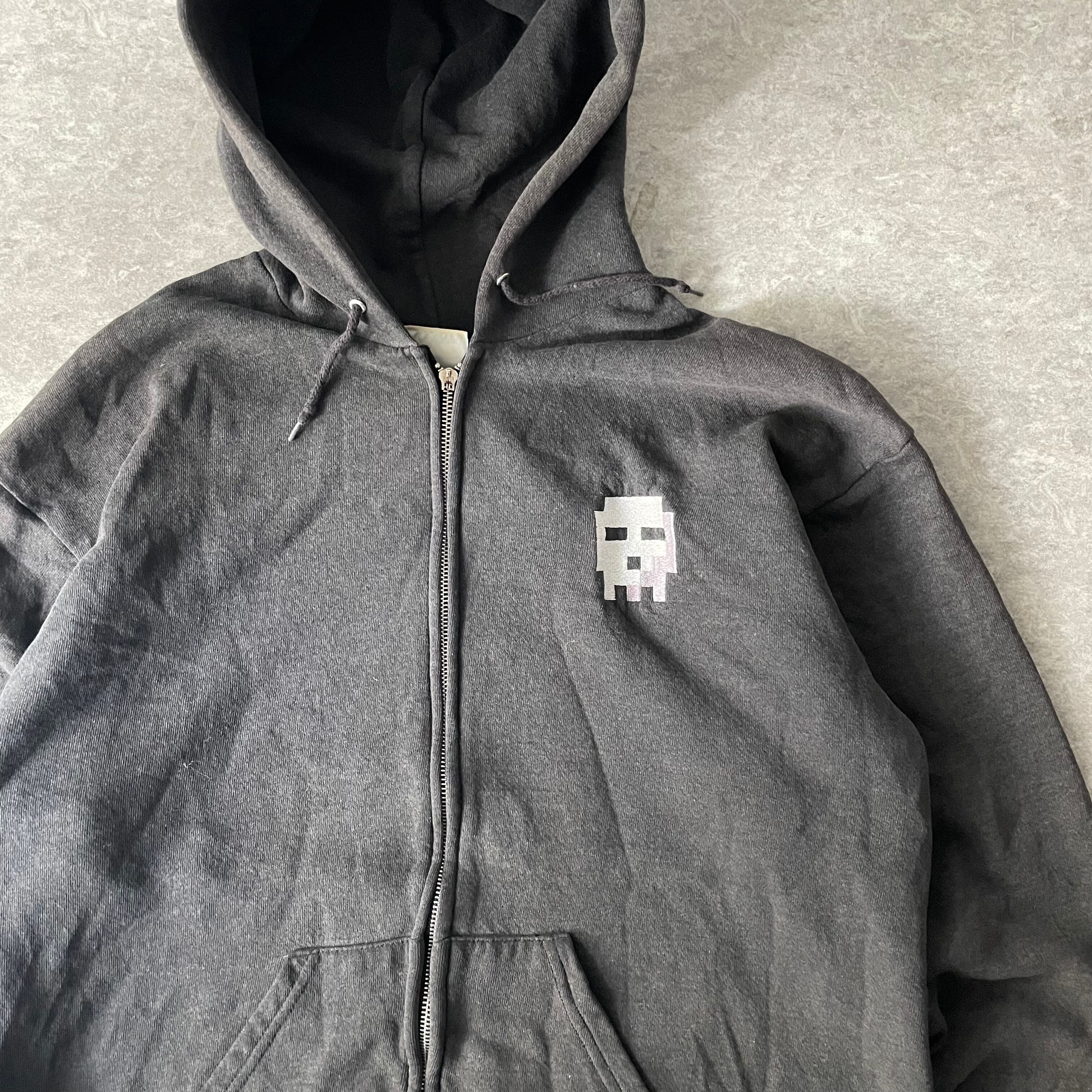 謎の四角いスカルワンポイントが入る炭黒フェードジップアップパーカー!