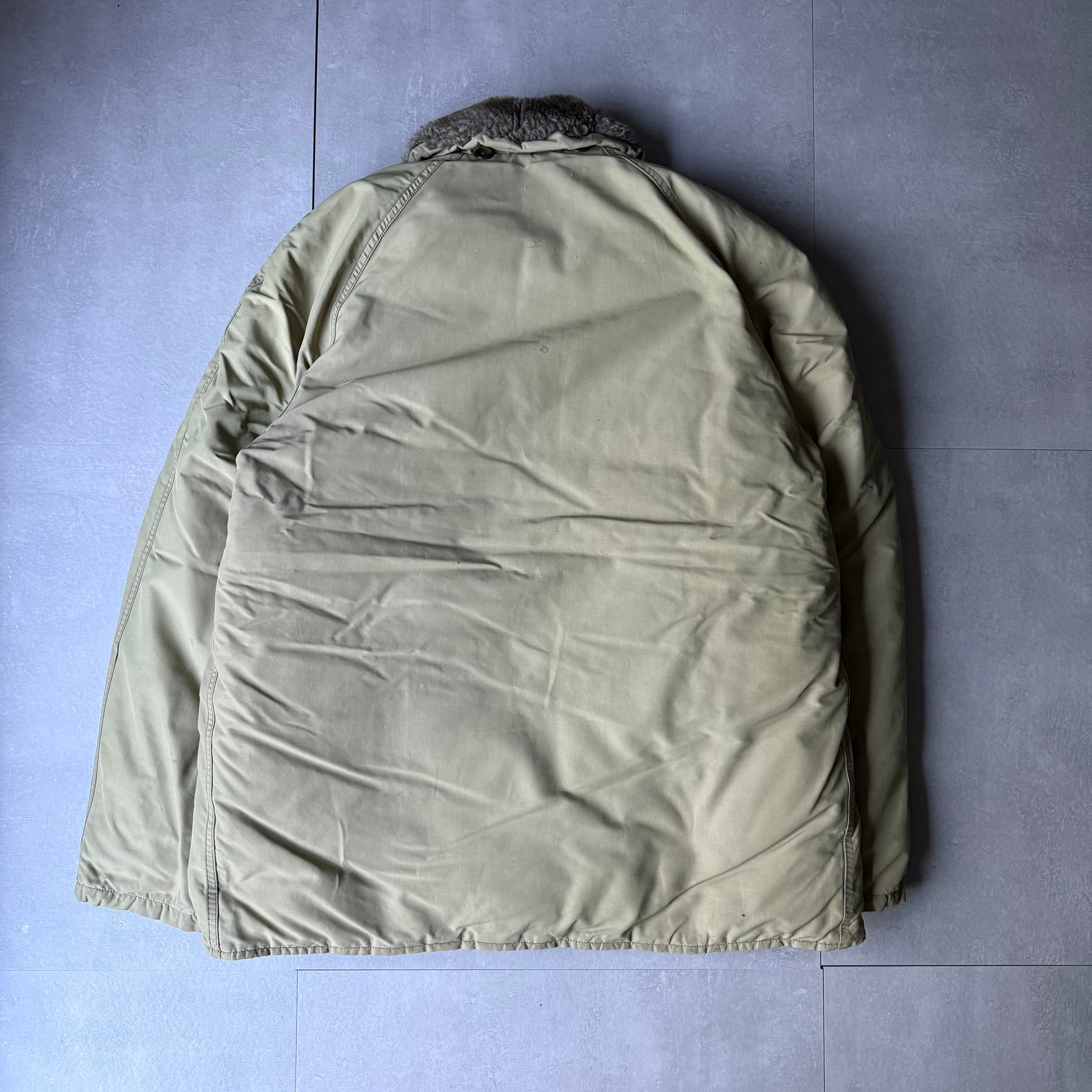 首元には人工のファーが貼られ、ハンドウォームポケットには毛布のようなウール地が使用され当時からグレードの高い上級モデルだったことが垣間見えます。